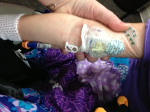 Five days since last post…and still at the hospital. Lenox has had two CT scans, a bone marrow aspiration, and a myriad of blood tests and cultures. They ruled out a relapse of leukemia which was – IS – a HUGE sigh of relief. They have gradually been ruling out different possibilities, each time Liz and I researching that possibility, and then being grateful when that factor did not test positive. They also surgically removed Lenox’s port because of concern that it may be harboring the infection. She did fine through that surgery and is adjusting pretty well to having a arm IV while we are here.