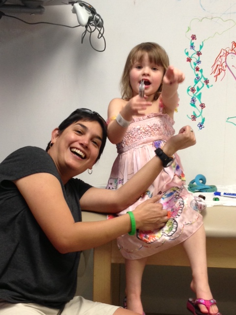 While Liz and I almost always find Lenox brilliant, in true 4 year old form, she had recently stuck a bead up her nose at school! Really Lenox?! What in the world was going through that head? At the time, we laughed ( and of course got the bead out!) but while here at the hospital we started to wonder if there might be a correleation between said bead incident and the fevers? Could there be another bead up there? A raisin perhaps? (Lenox had revealed to us that she dreamed there was a raisin up there – hmmm, seemed suspicious to me, and may warrant some dream analysis)Or had that bead, pulled off a floor of a preschool, been possibly a little dirty? Or did that bead scratch the inside of her nose causing an infection? The permutations of how this bead might be the true culprit became farcical, but alas an ENT doc came and affirmed that there are no obstructions, etc (the raisin apparently really was a dream). It doesn’t appear that anything related to her nose is causing the fevers. Good to rule out but leaves us still unclear about the cause.